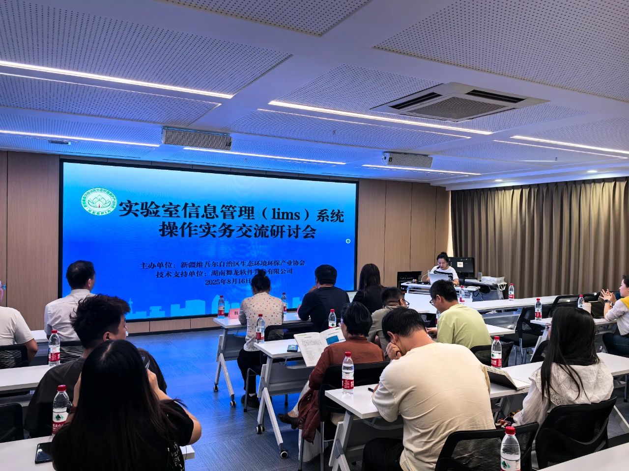 2025年8月16日,由新疆維吾爾自治區(qū)生態(tài)環(huán)境保護產(chǎn)業(yè)協(xié)會(以下簡稱 “協(xié)會”)主辦,湖南舞龍軟件開發(fā)有限公司提供專業(yè)技術(shù)支持的實驗室信息管理系統(tǒng)(LIMS)系統(tǒng)的操作實務(wù)研討會,以“線上和線下”結(jié)合形式順利舉辦。本次研討會吸引全疆各地會員單位參與,其中線上參會達 350余人次,線下參會35人,與會人員共同聚焦LIMS系統(tǒng)應(yīng)用為新疆生態(tài)環(huán)境保護產(chǎn)業(yè)